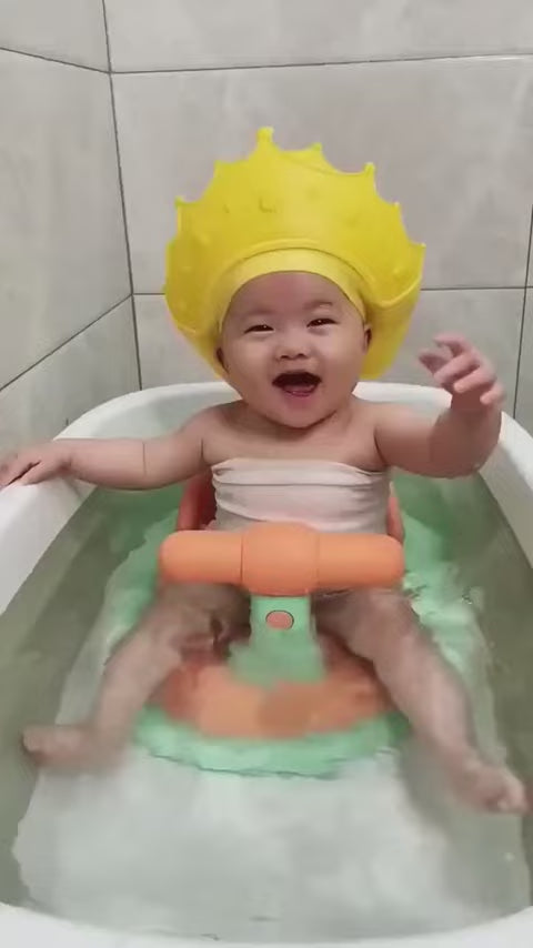 Features a wide visor design that shields eyes, ears, and face from water and shampoo, making bath time calm and splash-free